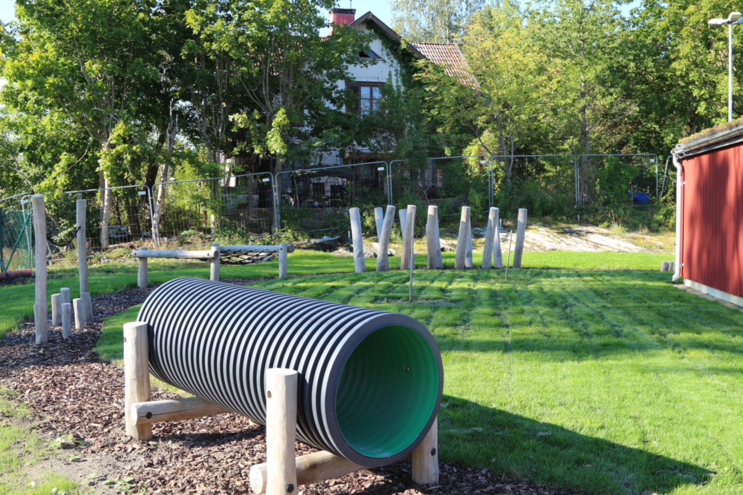 Förskolan har stora härliga lekytor med något för både små och stora. Byggnaden ligger