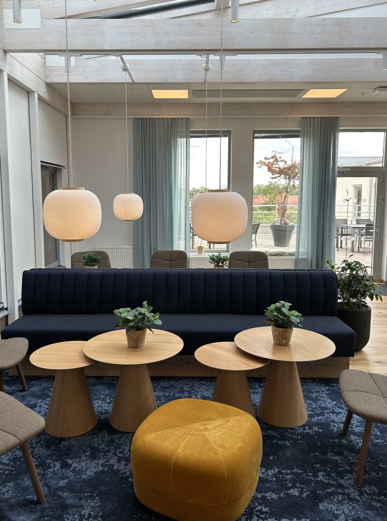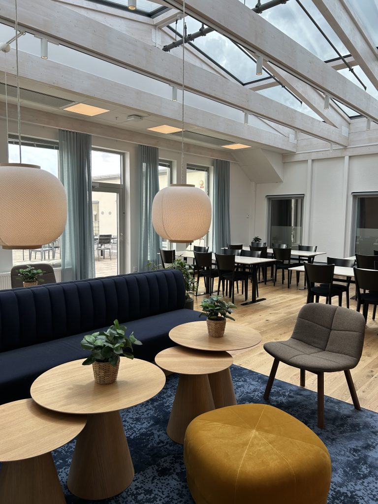 Som sista etapp påbörjas renoveringen av restaurangen med ny entré från servicecentret. Helt ny möblering med rumsavdelare för att skapa en härlig och inbjudande miljö.