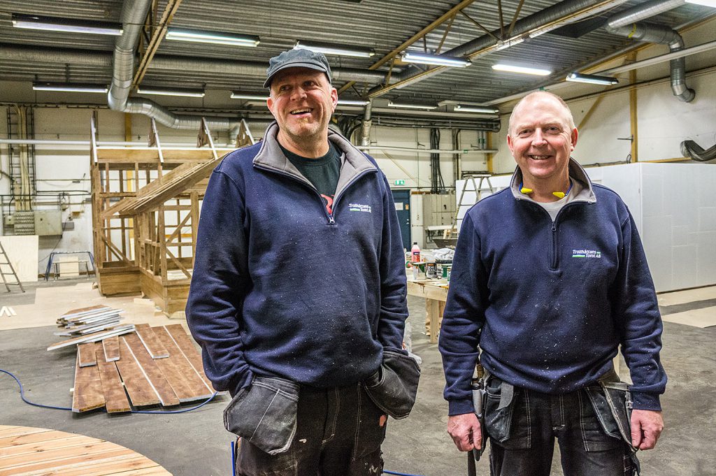 I snickeriverkstan på Tingvalla hittar vi Mikael Back och Frank Zandhoff i full gång med att skapa nästa lekfulla plats. Idéer kan poppa upp lite när som helst medan de jobbar på ett lekfullt byggkoncept för en ny temalekplats på Kungsgatan.