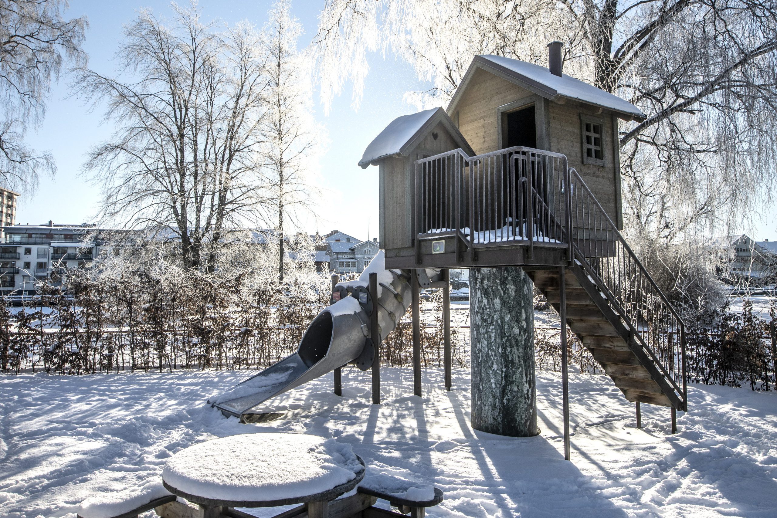 För vem säger att lekplatser bara hör vår och sommar till? Här går det att snöra på sig vinterkängorna, preppa med ombyten och ta varm choklad. För här finns lekmöjligheter året runt!
